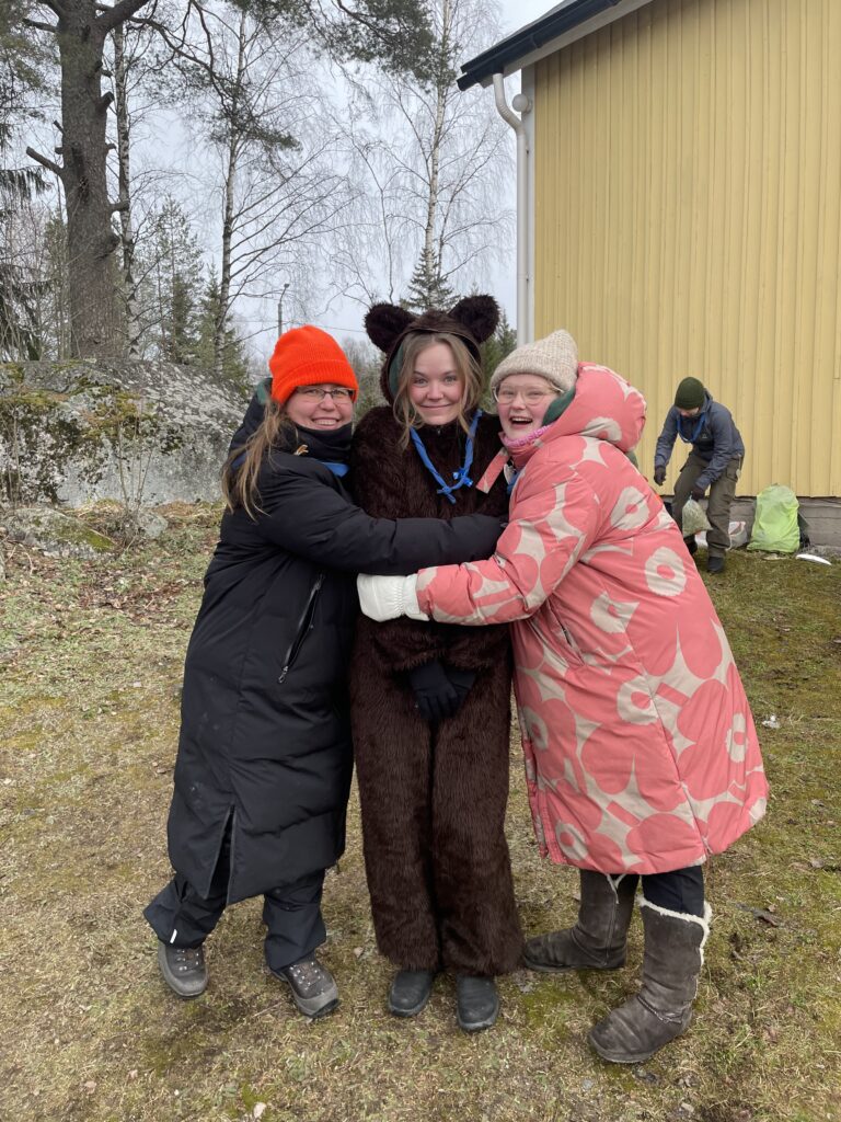 Valtavasta työstä lippukunnan eteen sekä kärkikolmikkona että ryhmänjohtajina ja myöskin 20-v juhlien järjestäjinä nykyinen kärkikolmikko Alma Aarnio, Alli Aarnio ja Simon Shiferaw.